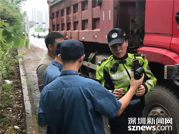 10月16日上午,深圳市交警与深圳市交委联合开展泥头车整治行动。其中,在香蜜湖路北行福龙隧道入口段,深圳交警联合深圳市交委行政执法人员对过往的泥头车进行重点检查,记者跟随执法人员进行了现场采访。
