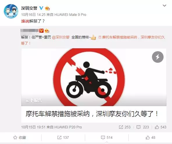 深圳从未如网上所说要对摩托车解禁,并将继续实施禁摩管理政策。目前,对于在原关外部分交通不便的偏远地区,为了市民出行的便利,是否适度放开“禁摩令”我们也在进一步研究之中。同时,市民可以在网上提出合理的管理建议和意见,为将来深汕合作区试点多元化管理建言献策,现深圳暂不考虑解禁。