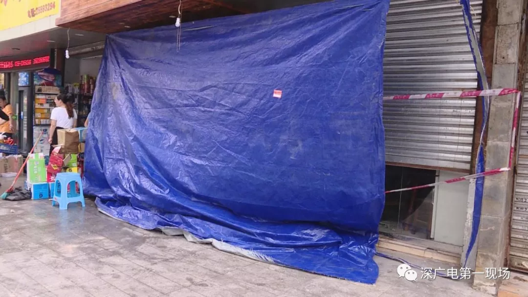 今天中午一点前后,记者赶到事发的红宝路,看到三家相邻的餐饮店被遮挡,一家日料店店内拉上了封锁线,旁边的两家餐厅大门紧锁。