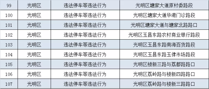 深圳新闻网11月5日讯(记者 何畅)据“深圳交警权威发布”微信公众号消息,近期深圳交警公布启用115套交通技术监控设备,重点整治违法停车、冲红灯、超速、逆行、不按车道方向行驶、占用公交车道等多种违法行为。其中福田区56套,罗湖区20套,宝安区4套,光明区35套。