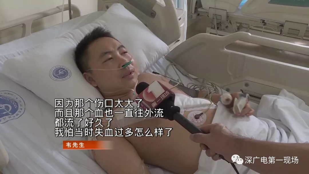 最终,连闯三个红灯之后,救护车上的伤者顺利到达医院。谈到昨晚的经历,伤者韦先生仍然后怕不已。