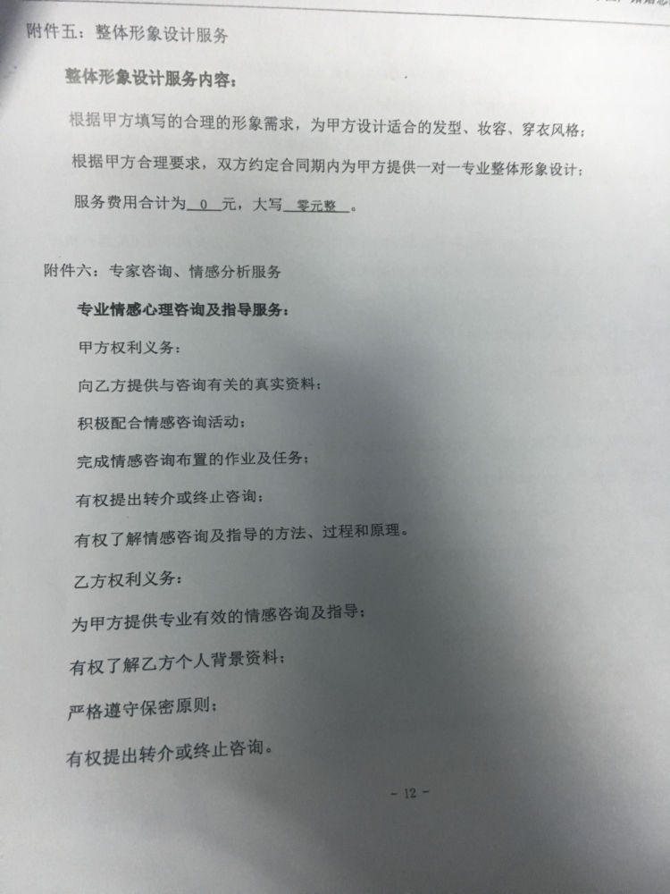 8位里面见了5位,还没有找到适合的,刘小姐开始着急。她向红娘咨询,红娘认为是刘小姐的形象不好,并建议她做价值3万块钱的个人形象设计。“我以为合同里面的整体形象设计服务就是包含现在所需要的形象设计,不然我会花将近5万元去见几个男的?”刘小姐认为红娘故意误导,并直言她形象不好,对她打击很大,所谓的个人形象设计,是引诱她变相增加消费。