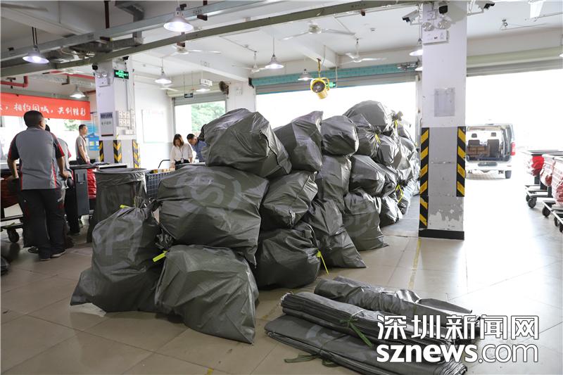 已经分拣好的包裹打包好,等待运送到各收派件网点
