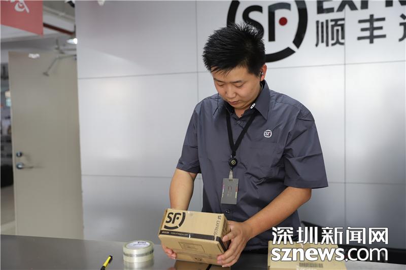 收派员对包裹进行打包