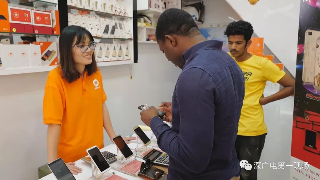 在迪拜德拉手机配件批发市场内,mi one手机店楼上楼下面积不超过10平方米,小小的空间里,非洲中东客商一张口就要提货几百上千台,店铺每月的销售量达到8万-10万台,全年利润高达千万元。