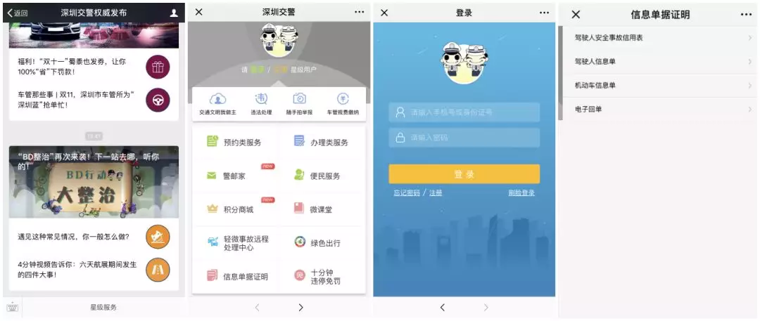 深圳新闻网2018年11月14日讯(记者 刘婷)据深圳交警权威发布消息,2018年5月8日起,个人的驾驶人安全事故信用表、驾驶人信息单、机动车信息单等信息单据证明全面实行网上全流程办理。