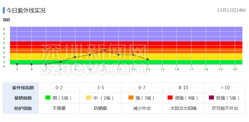 市气象局发布今日紫外线实况(数据更新于11月13日14时)