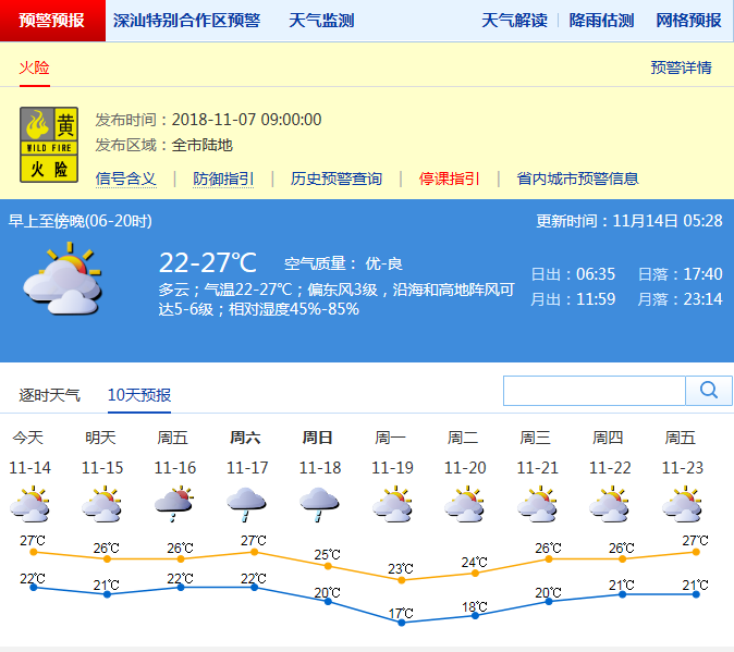 深圳新闻网11月14日讯(记者 陈婕)@深圳人,温度并不高的中午,适合出去吹吹小风,散散小心,睡睡小觉。趁天气好,还可以晒晒被子!过几天天就没那么好了,距离周末的冷空气还有几天准备时间,这次不会让你们太失望,都可以准备好长袖了!