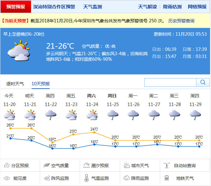 市气象局发布未来十天天气预报(数据更新于11月20日8时10分)
