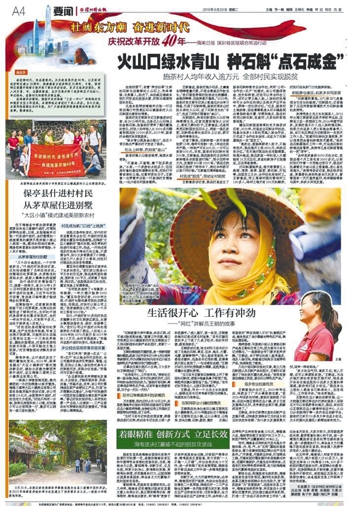 8月28日,《深圳特区报》推出了“壮阔东方潮奋进新时代”庆祝改革开放40年——《海南日报》《深圳特区报》联合采访行动首期报道。首期报道通过通讯、评论等形式,以点带面,展示了海南全力打赢脱贫攻坚战取得的成就。