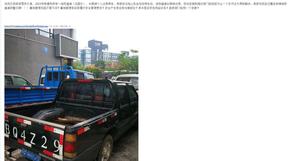 消防通道长期被占用,更有商家私划停 ...