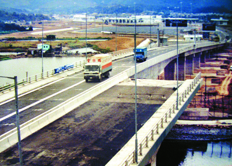 1989年12月26日,皇岗口岸开通时的第一辆入境货柜车,当时落马洲大桥只建成一半。 黄国春 摄