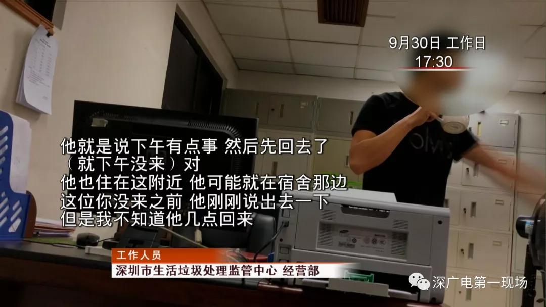 就在下午四点到四点半之间,暗访组成员还发现,有大量深圳市生活垃圾处理监管中心和深圳市生活垃圾分类管理事务中心的工作人员离开单位,疑似脱岗早退。
