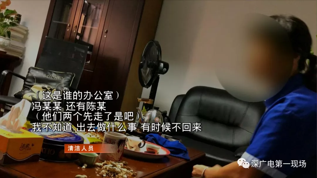 看到该单位工作作风如此涣散,暗访组成员继续对另外一栋高层办公楼展开暗访检查。下午4点03分,暗访组成员刚进入二楼——深圳市生活垃圾处理监管中心办公区域,就听到有两名男性工作人员招呼打扫卫生的清洁人员帮忙整理办公室,而这两人背着包,径直离开办公大楼。