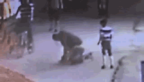 将小月按倒在地后,一名成年男子对着孩子的头部打了五拳,看到围观市民越来越多,男子带着身边的男孩离开。