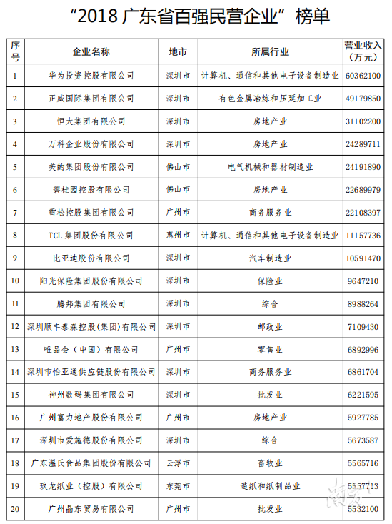 深圳华为、恒大、万科、顺丰等40家企业上榜