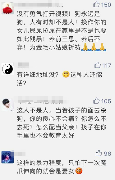 男子虐杀宠物狗视频在网络上流传后,不少网友纷纷谴责该男子的残忍行为。