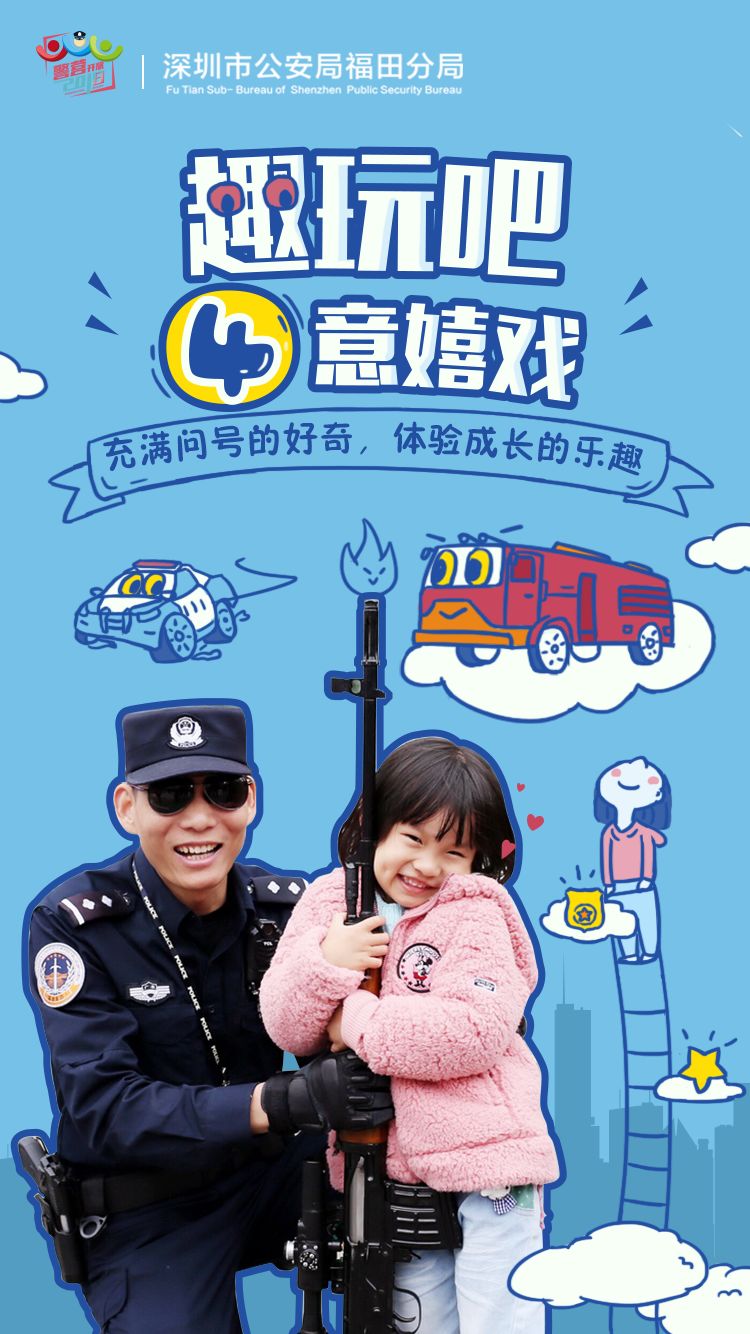福田警方从11月26日开始,连续推出开放日倒计时5期主题海报:“变身吧,全副‘5’装”、“趣玩吧,‘四’意嬉戏”、“学习吧,举一反‘3’”、“见面吧,为你‘2’来”、“一起吧,‘1’起警彩”,向市民发出邀请函,通过官方微信、微博等新媒体平台发布,抢先看精彩。