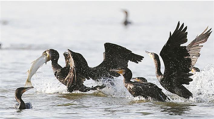 日前,数万只普通鸬鹚来到深圳湾捕食。据深圳市观鸟协会田老师介绍,每到冬季普通鸬鹚从北方来到深圳过冬,来年春季返回北方繁衍生息。