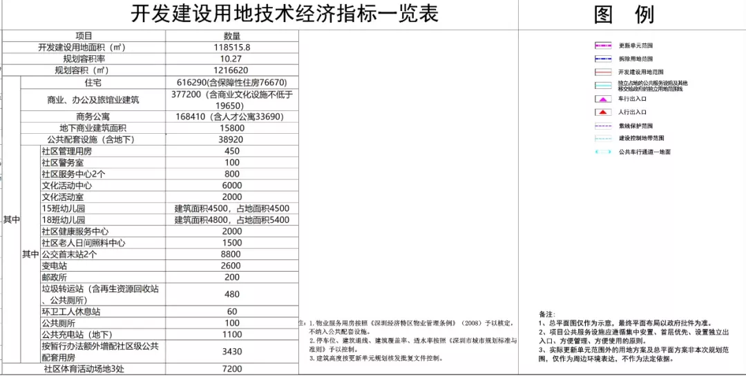 其中,住宅616290㎡(含保障性住房76670㎡),商业、办公及旅馆业建筑393000㎡(含商业文化设施19650㎡),商务公寓168410㎡(含人才公寓33690㎡),公共配套设施38920㎡(含幼儿园2处共33班、公交首末站2处、社区健康服务中心、社区老人日间照料中心等);另外体育活动场地3处,面积不少于7200㎡。