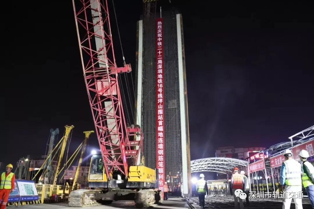 近日,深圳地铁16号线六工区坪山围站第一幅地连墙钢筋笼成功吊装入槽,顺利完成砼浇筑,这标志着坪山围站正式进入主体围护结构施工。