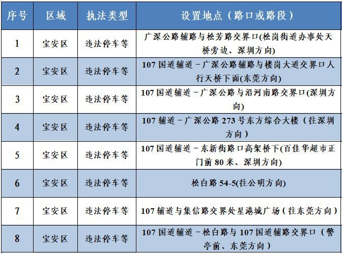 46套专门查处违法停车等违法行为的违停球监控设备上线,主要分布在:宝安、光明区人、车流量密集区域。宝安区12套主要分布在107国道辅道沿线路段。光明区34套主要分布在光明广场、红花北路、圳园路、光明大街等路段。