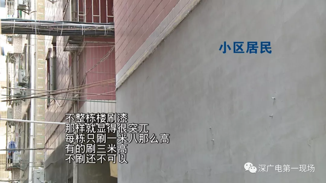 一些居民们投诉说,外墙粉刷只刷三米高,觉得很难看,如果要美化外墙,就应该对整栋楼从上到下全部美化。