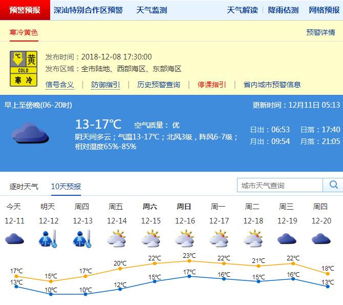 市气象局发布未来十天天气预报(数据更新于12月11日5时13分)