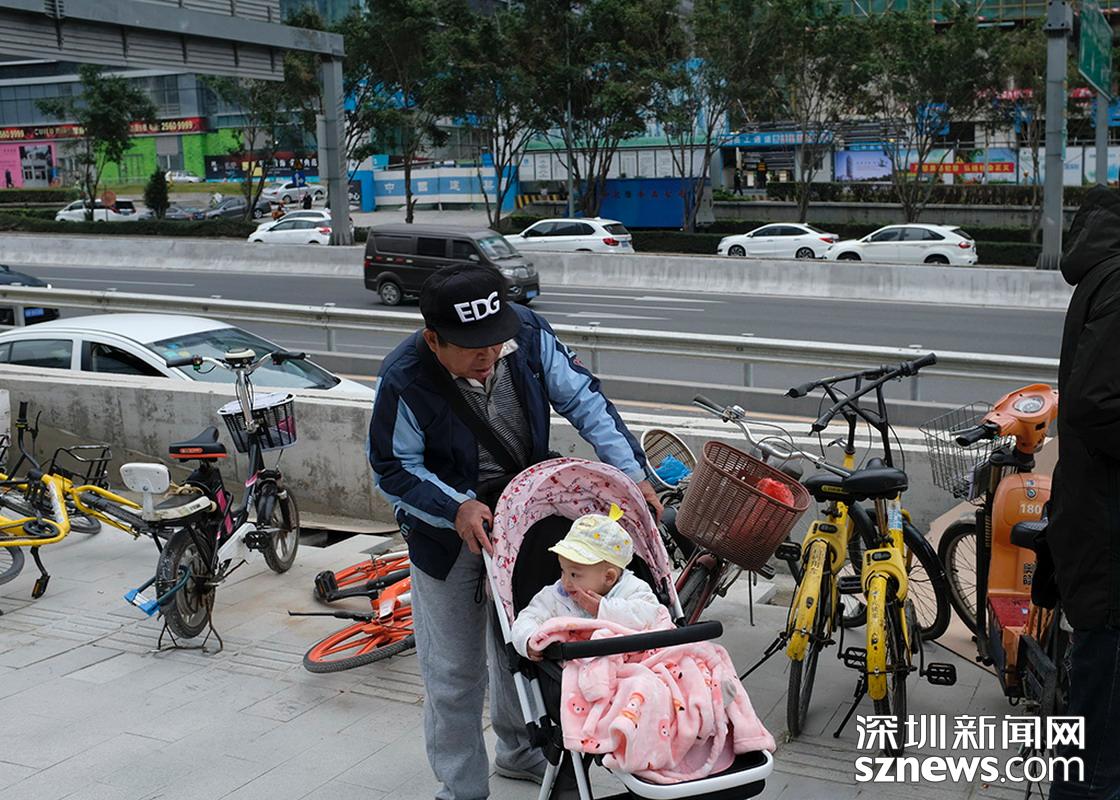 2018年12月12日,罗湖田贝地铁站附近,一位和家长出行的小朋友盖上了小被子御寒。