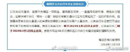 本月5号,福田区城市管理局发布公告,称福田区公共自行车一期于2019年1月1日停止运营,公共自行车二期于2019年3月1日停止运营。公告中指出,停运的原因是共享单车的大量涌入和其便利性导致用户大量流失。据资料显示,深圳市罗湖区公共自行车项目也已于2018年1月1日起暂停运营。被逼退的公共自行车,背影迟暮,令人唏嘘。一声喊停,但是共享单车的风口大战也已经来到岔路口,“最后一公里”的建设向何处去,仍是需要关注的问题。