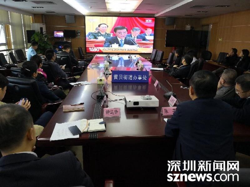 罗湖区黄贝街道组织领导干部集中收听收看庆祝改革开放四十周年大会。