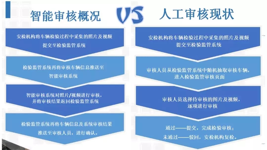 对审核结果、审核时间、通过率等各个方面,进行实时监控;智能审核信息的大数据分析,可为车辆检验流程优化提供强有力的支撑。