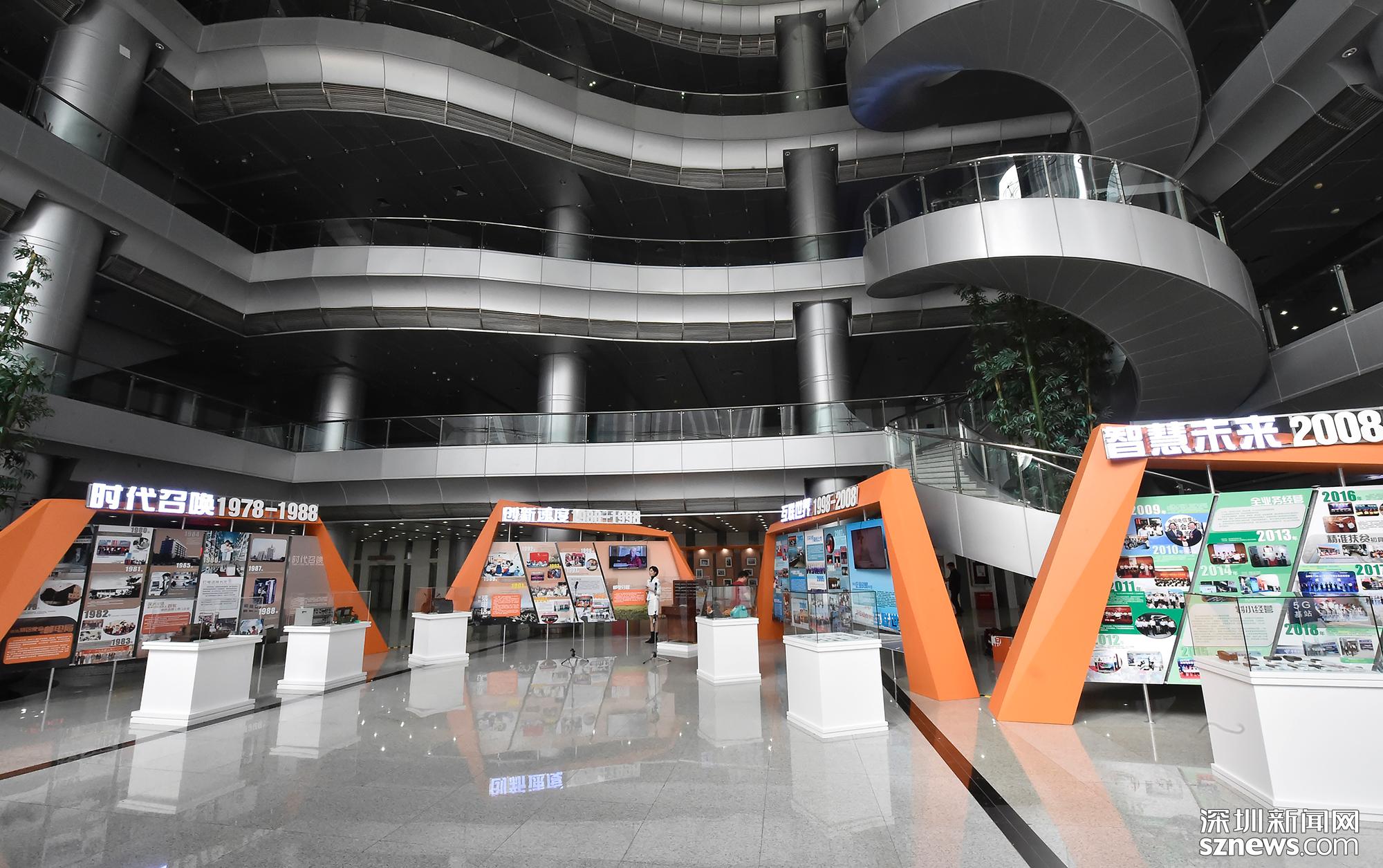 深圳通信改革开放40周年展览在信息枢纽中心开展,图为展览全景图