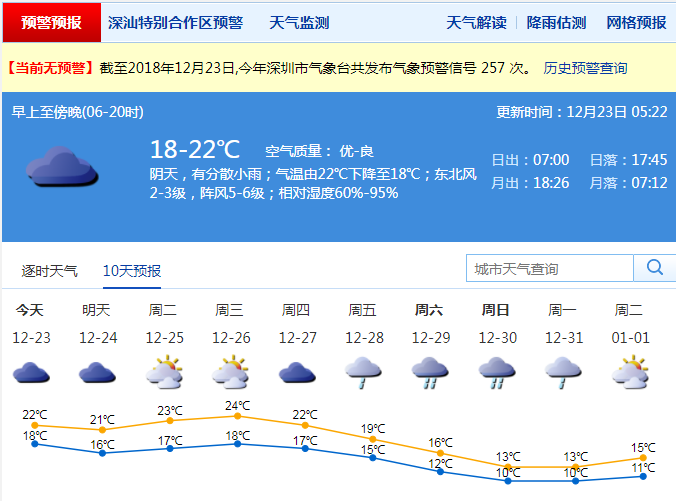 深圳新闻网2018年12月23日讯(记者 施冰冰)据市气象台发布消息,昨日深圳市国家基本站录得最高气温26.9℃,为深圳近20年来最热冬至。上一个更热的冬至出现在1998年,最高气温27.7℃;历史最热冬至出现1992年,最高气温27.9℃。