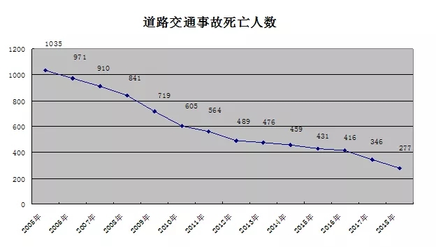今年以来截止12月21日,我市的道路交通事故死亡人数实现了17.31%的大幅下降,预计全年全市道路交通事故死亡总人数将低于300人,在全市机动车保有量继续增长的情况下,预计年万车事故死亡率约为0.9左右。