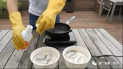第三步,分别将正常带鱼和浸泡了福尔马林的带鱼进行油炸。