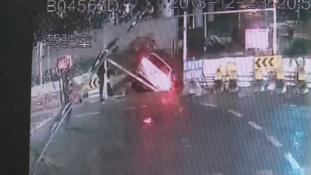 深圳一男子开车搞“小动作”,一头冲进工地车悬半空!