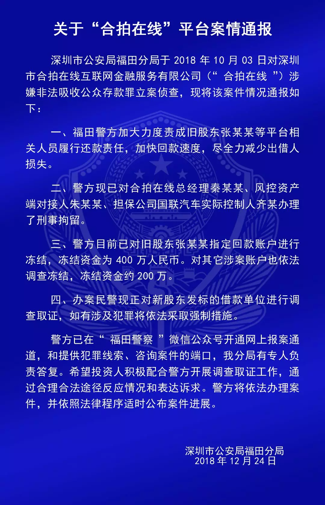关于“合拍在线”“壹佰金融”“五星财富”“众车在线”“财富中国”“小零钱”“钱爸爸”“合时代”和“前金融”平台的案情通报