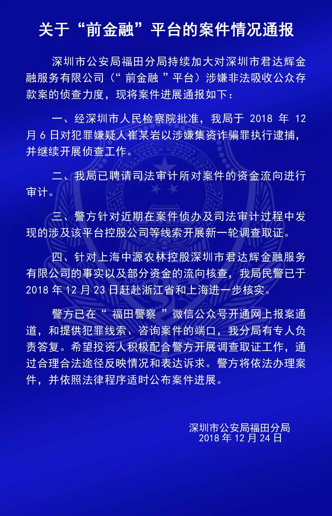 关于“合拍在线”“壹佰金融”“五星财富”“众车在线”“财富中国”“小零钱”“钱爸爸”“合时代”和“前金融”平台的案情通报