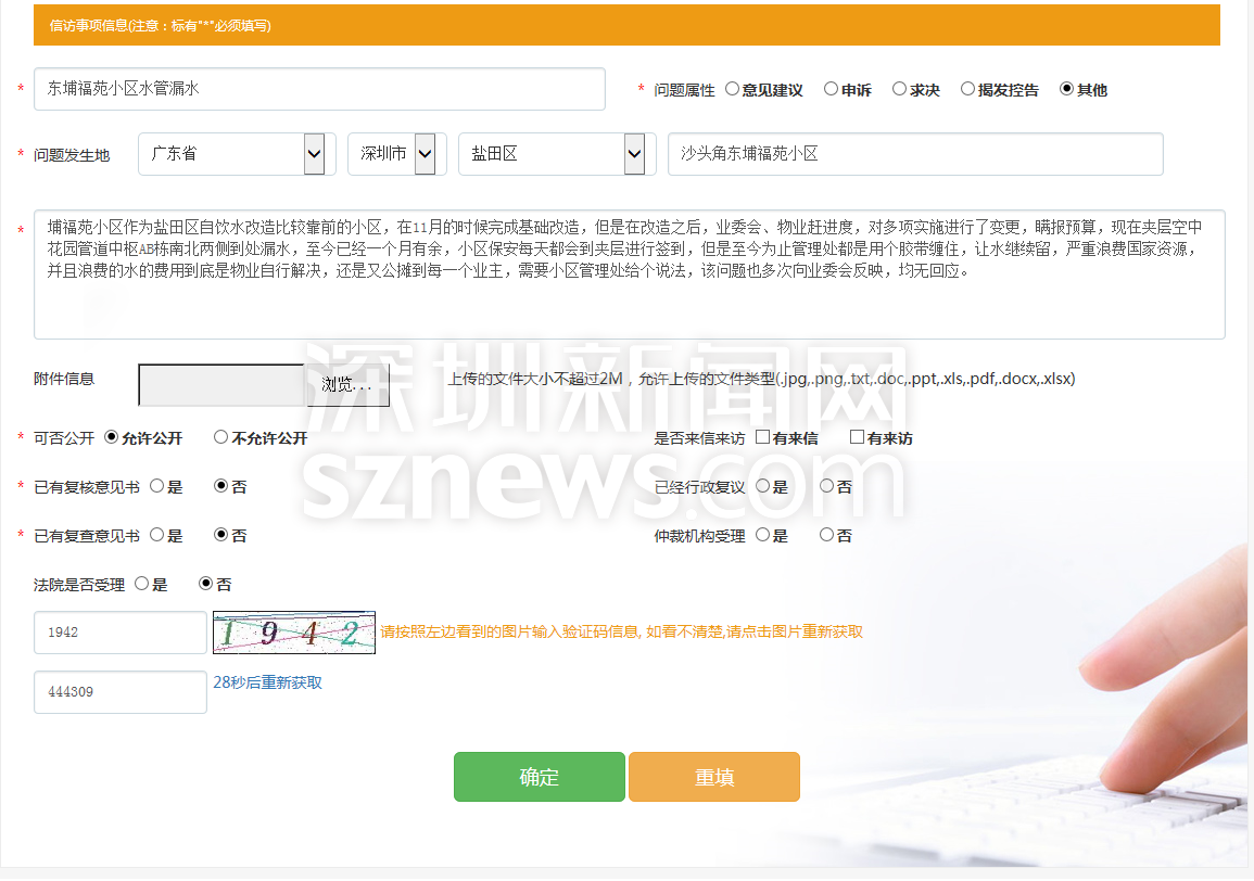 为核实网友反映情况,记者随即登录该网站,点击“我要写信”后,便跳转到写信填表页面,填写完基本信息,点击确认,显示“投信成功”。经测试,记者并未看到该网友反映的“添加失败”情况。但从网帖上看,该网友仍对自己投诉无门的遭遇感到糟心,他坚持表示自己手上有水管漏水以来近一个月的照片和视频,自己反映的情况也绝对属实,希望有关部门能给一个答复。