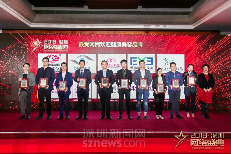 “十大行业最受网民欢迎品牌”奖项(健康美容)获奖代表上台领奖
