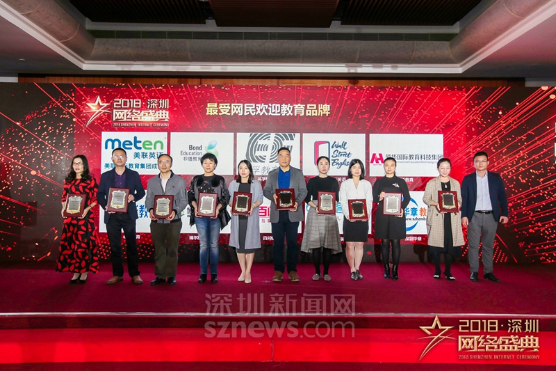 “十大行业最受网民欢迎品牌”奖项(教育)获奖代表上台领奖
