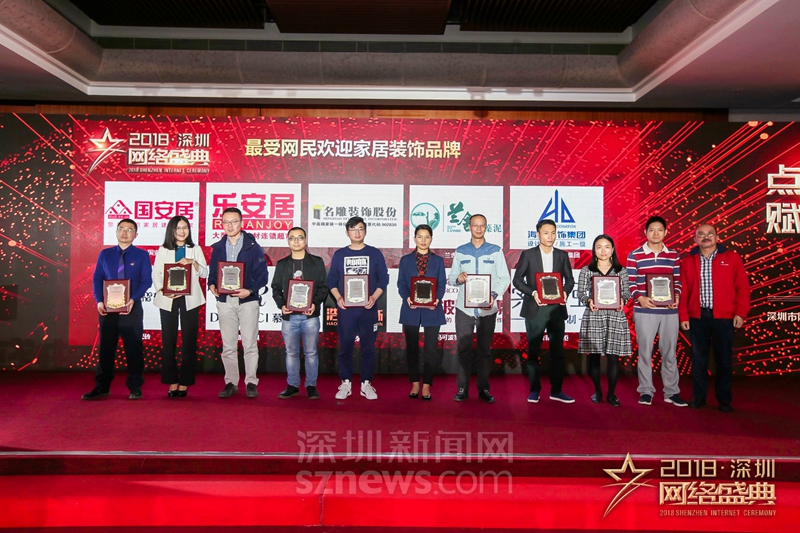 “十大行业最受网民欢迎品牌”奖项(家居装饰)获奖代表上台领奖