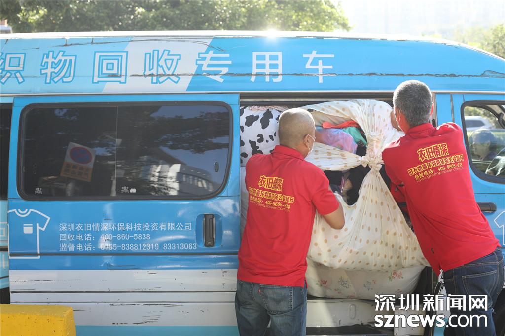 车停人下,工作人员打开织物回收箱的锁扣后,将平时回收的床单铺在取衣口前,将市民投入回收箱的衣物放置在床单上。放置完成后,工作人员拍照打卡,并做好记录,然后打好包后便塞入车中。据观察,车辆仅前排可坐人,包含司机在内只有两个座椅,所有后座皆为衣物放置区域。