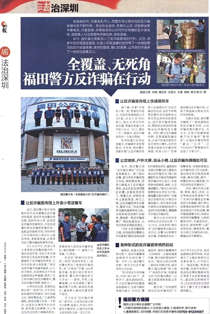 ★★福田警方通过搭建“线上线下”两张防护网,组建庞大的“反诈骗先锋队”,多管齐下,扩大反诈骗宣传的覆盖面和影响力,最大限度预防和阻止诈骗犯罪。
