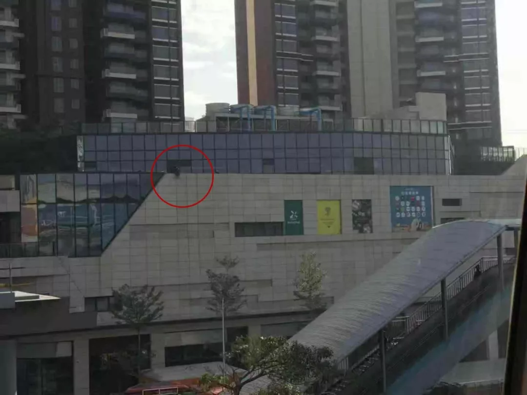 昨天下午2点多,市民崔先生向我们节目爆料称,他在深圳横岗六约地铁站,发现地铁站对面的中影国际广场4楼平台上,有一名男子抱着一名小孩声称要跳楼。于是,崔先生抓拍下了这惊险一幕。
