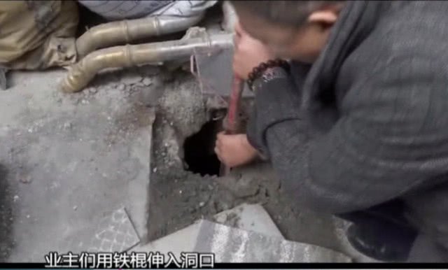 位于宝安西乡街道流塘路的嘉华花园西区业主介绍,3天前业委会筹集款项,对小区唯一的楼道进行地面翻新,施工工人无意间砸穿地板后发现,地下竟然浸满了水。业主让他们在小区内其它地方砸洞,发现积水最严重的位于5栋旁边,业主们用铁棍伸入洞口,测得水位高1.44米。