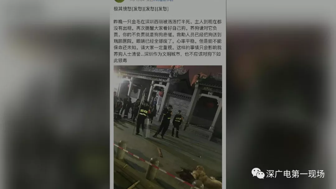 一只金毛犬在深圳西丽被打得半死
