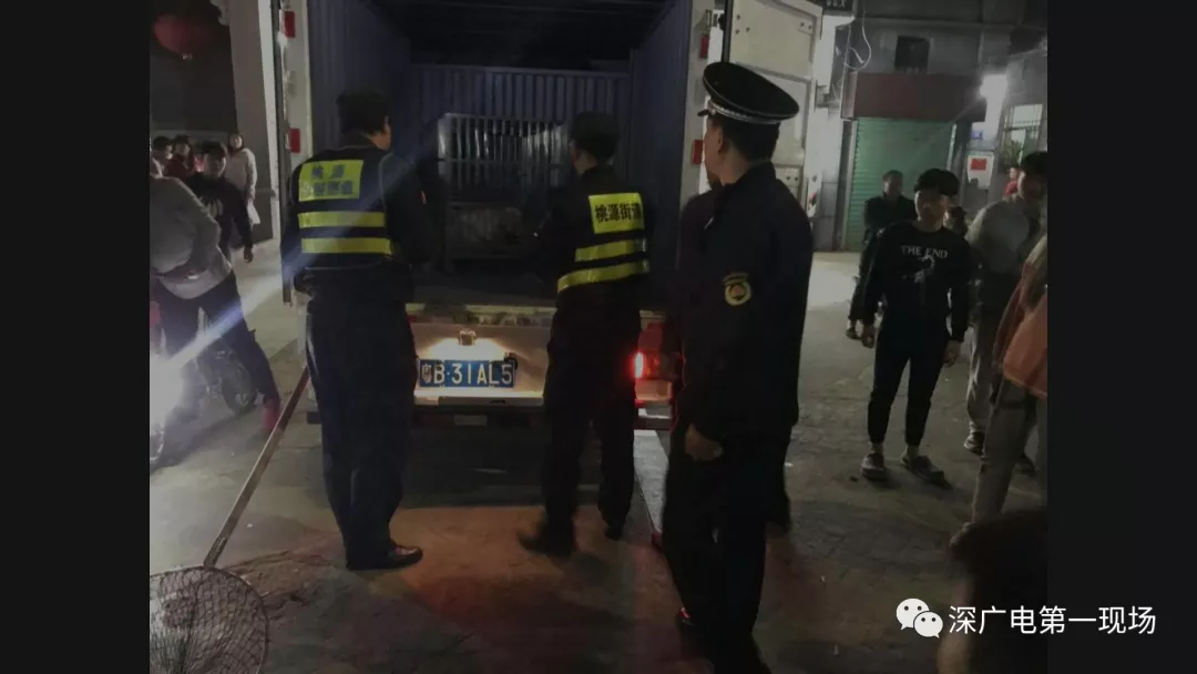 桃源街道执法队负责人表示,当晚他们的值班人员,接到平山社区警长通知,说在平山村发生狗咬人事件,要求他们协助抓狗,执法人员带着工具赶往现场。