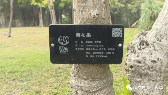 记者在园林管理中心了解到,海杧果,又名黄金茄、牛心荔,夹竹桃科,因其果实似芒果而得名。其树为常绿小乔木,海芒果花多美丽而芬芳,因此被选作公园的观赏性植物,树冠美观又喜欢生长在海边。